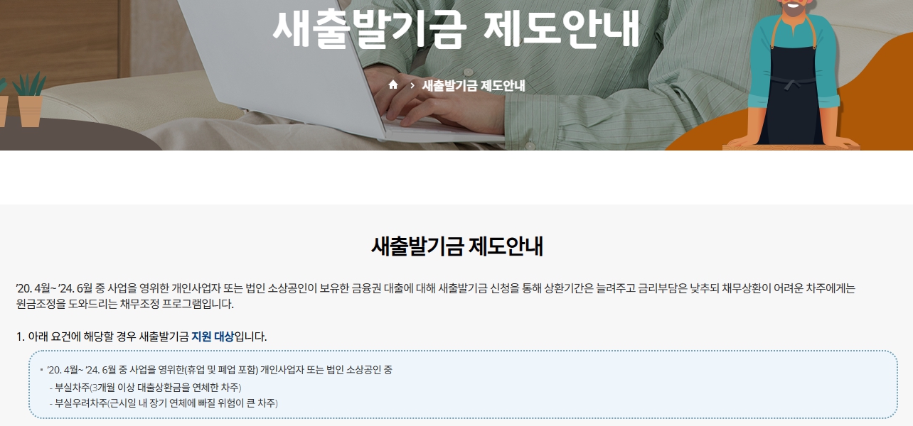 이러한 분들을 위해 정부에서는 '새출발기금'이라는 지원 프로그램을 마련하였습니다.