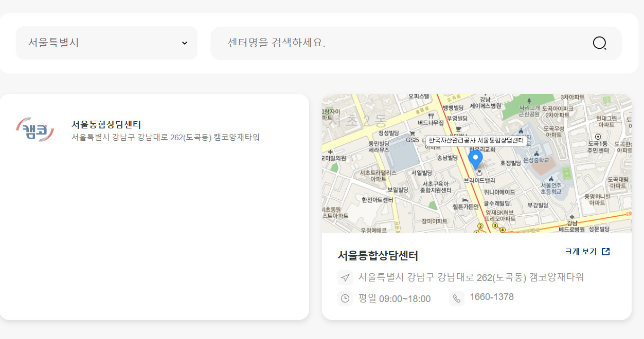 위와 같이 지역별 센터 위치를 사전에 확인후 방문하시면 편합니다.