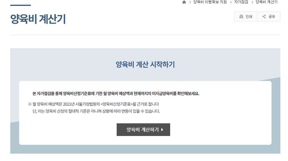 홈 >양육비 이행확보 지원>자가점검>양육비 계산기