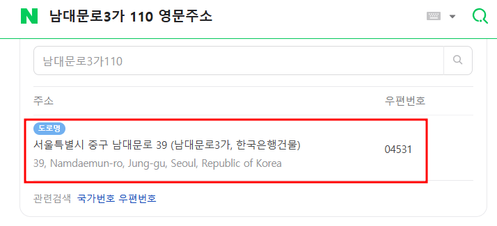 영문주소변환 : 네이버 검색