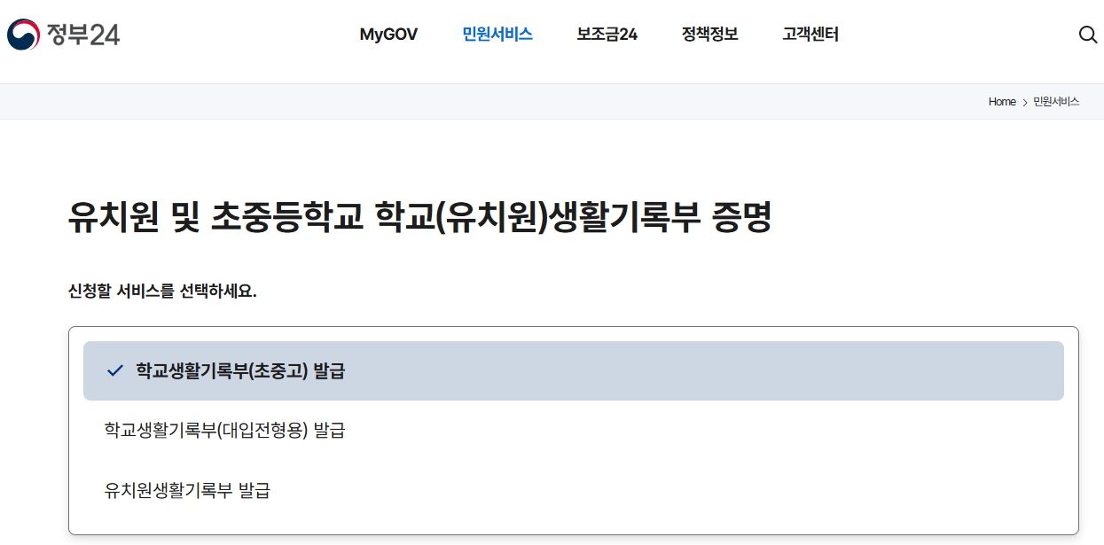 오늘은 정부24가 제공하는 민원서비스와 대표적인 예인 생활기록부 조회 서비스에 대해 알아보겠습니다.