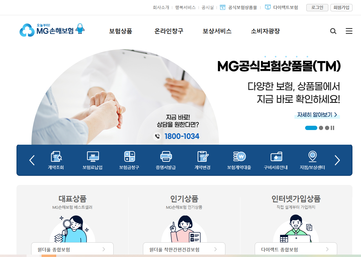 MG손해보험 공식사이트입니다. 일반, 장기, 자동차보험 등 모든 손해보험 상품의 가입 및 보상서비스 제공.